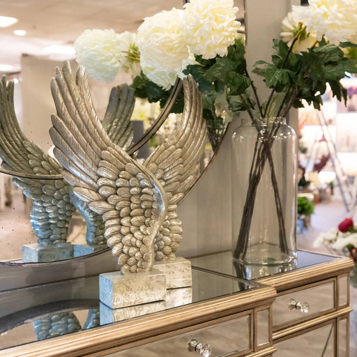 This is the Large Freestanding Antique Silver Angel Wings Ornament, at 49.5cm high, 20cm wide and 10cm deep this is a beautiful furnishing that wo...